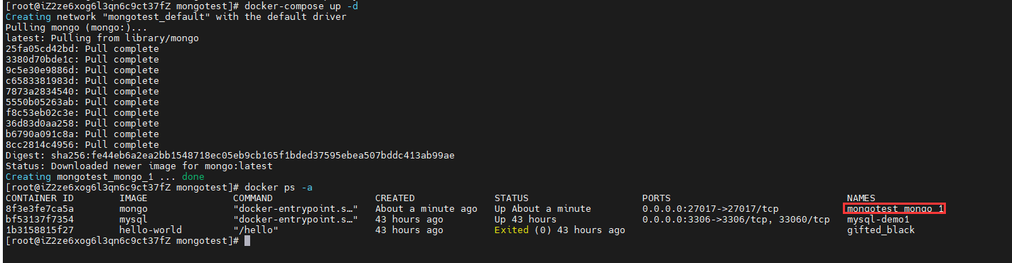 version: '3.1' services: mongo: image: mongo restart: always environment: MONGO_INITDB_ROOT_USERNAME: root MONGO_INITDB_ROOT_PASSWORD: example ports: - 27017:27017 volumes: - /home/mongotest:/data/db - 执行命令: