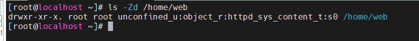 对比可以看到差异- 需要将 ‘/home/web’ 的安全上下文修改成和 ‘/var/www/html’一致就行